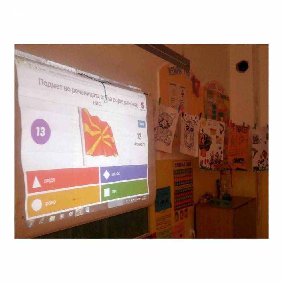 За време на часовите во V-1 одд. успешно се применува ИКТ-алатката Kahoot (online интерактивен квиз со употреба на мобилни телефони за давање одговори на прашањата). Учениците имаат можност да ги прошируваат и утврдуваат стекнатите знаења на забавен и интересен начин. |