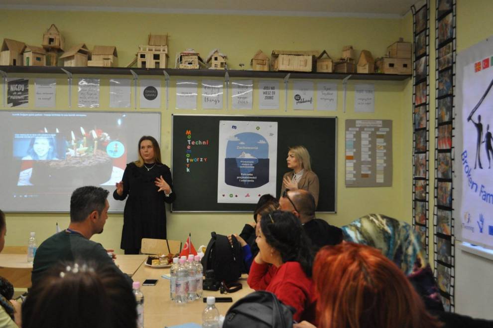 Во периодот од 25-29.03.2019 година се реализира втората планирана средба од меѓународниот КА229 Erasmus+ проект, “Broken Family Children” / „Деца од „растурено“ семејство“, на која учествуваат група наставниции стручни соработници од Македонија, Романија, Турција и Италија. Домаќин на средбата беше Полска и основното училиште во полскиот град Колобжег - Szkoły Podstawowej nr 6. Целта на состанокот беше да се развијат ефективни методи за работа со деца кои имаат негативни емоции, се асоцијални и оние кои се наоѓаат во неповолна положба во семејството. Вежбите обработени за време на работилниците, во кои учествуваа наставниците од гореспоменатите земји, имаат за цел да помогнат во намалување на агресивното однесување на учениците, намалување на нивното отсуство од училиште, подобрување на квалитет на учењето на учениците, зголемување на нивните компетенции и развивање на нивните способности. За време на работните средби, наставниците ги споделија своите знаења и искуства и ги споредуваа статистиките помеѓу училиштата. Во прилог на работата на проектот, учесниците имаа можност да ги посетат Колобжег, Гдањск и Берлин. Проектот е финансиран од Европската Унија, со посредништво на Националната агенција за европски образовни програми и мобилност на секоја од земјите-учесници. |