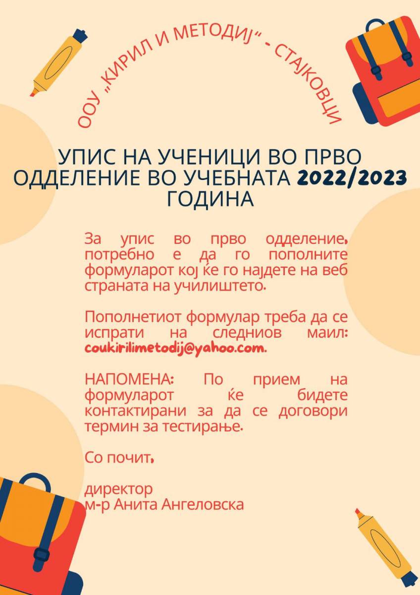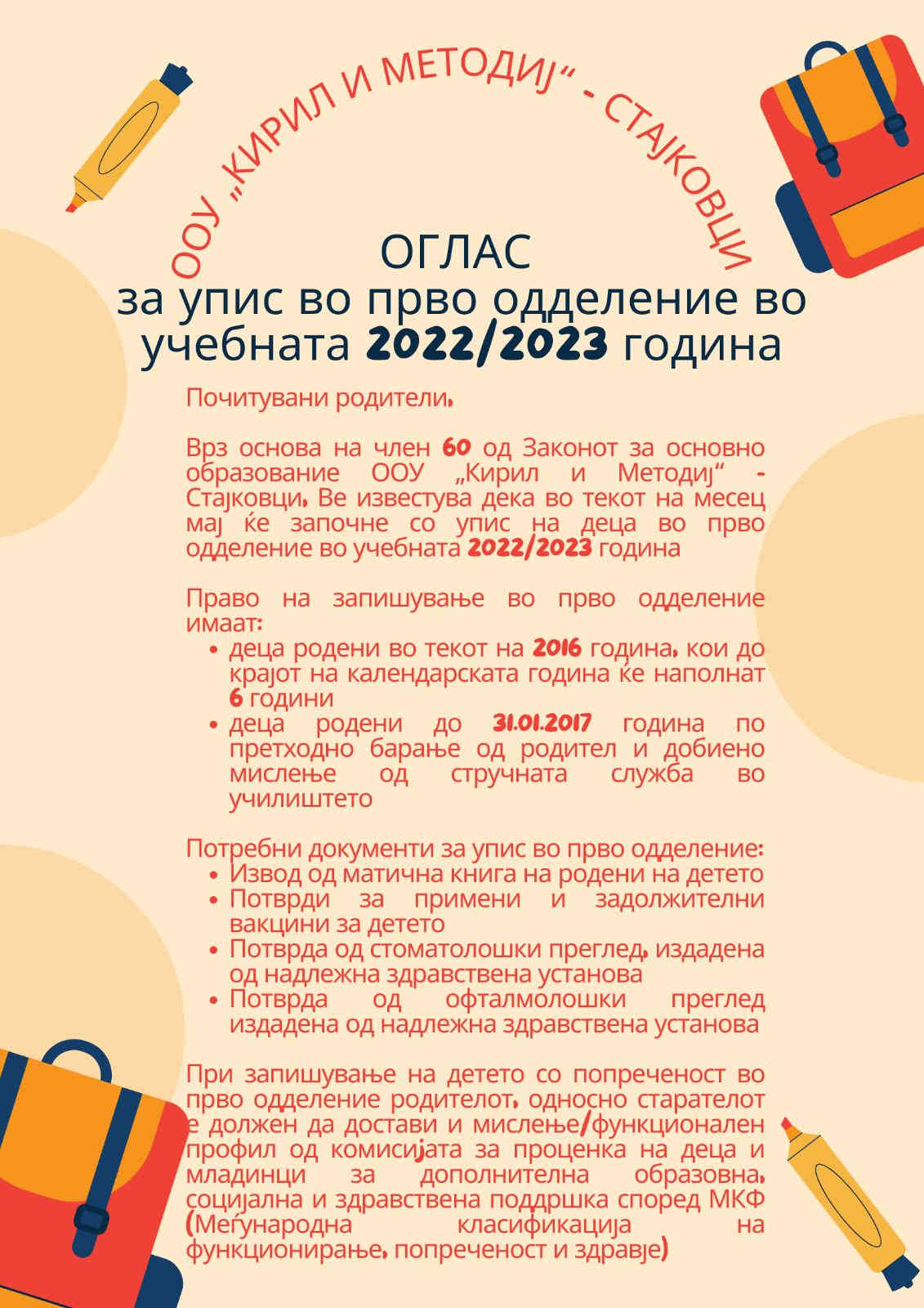 Огласи за упис на првачиња (македонски и албански) со одлука за назначена комисија.